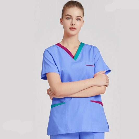 Short Sleeve Scrub Top Workwear Cotton Doctor Costume Scrubs