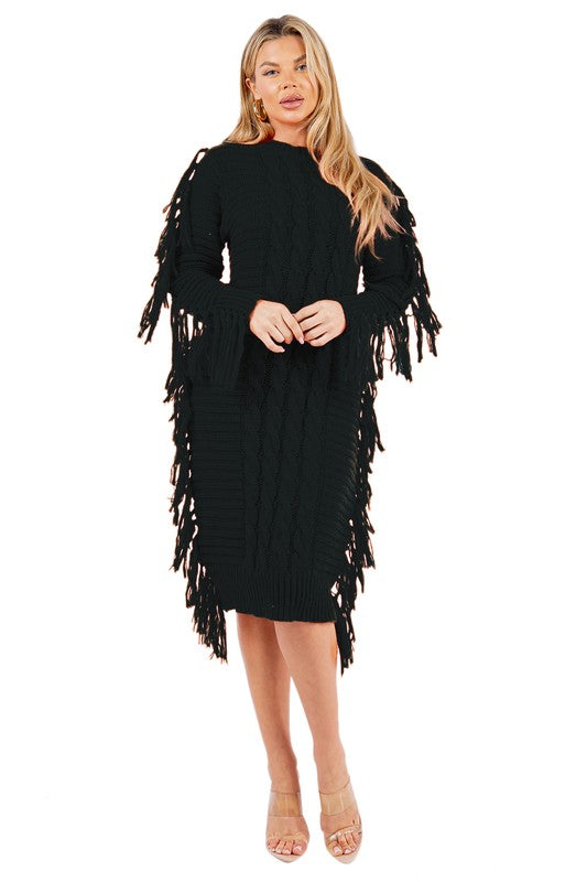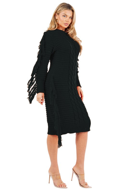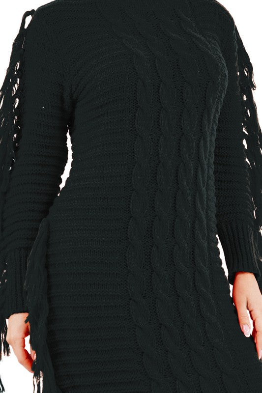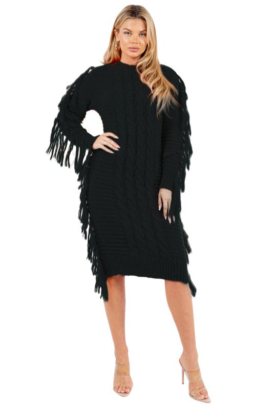 Sexy fashion sweater dress, long sleeves, multi tassel looks